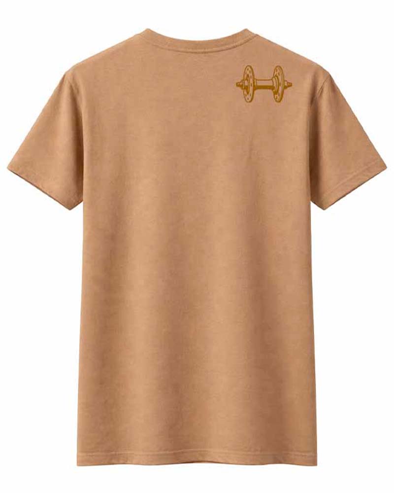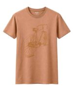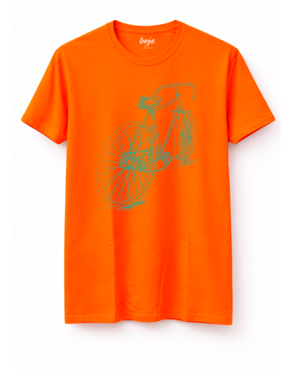 Es una camiseta con un estampado de bicicleta de color marron diseñada para hombres que disfrutan del ciclismo o simplemente se identifican con un estilo de vida activo y libre. Su diseño frontal destaca por una ilustración de bicicleta en tono marrón que aporta personalidad sin resultar excesiva, mientras que en la parte trasera incorpora un discreto detalle gráfico sobre el hombro que refuerza su carácter original. Es una prenda pensada para expresar afición y estilo de forma natural.