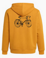 El diseño destaca por su original estampado de bicicleta en la espalda y un detalle gráfico sutil en el pecho, que hacen de esta sudadera algo más que una prenda básica. El corte cómodo con capucha y cordón ajustable, junto al bolsillo tipo canguro, aportan funcionalidad y estilo a partes iguales.